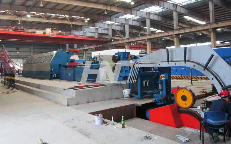 2. The production line is composed of the melting furnace, holding furnaces, four-wheel continuous casting machine, straightening machine, front traction, rolling shear machine, medium-frequency heating furnace, feeding machine, continuous mill machine, cooling system, take-up rod device, and electrical control system.